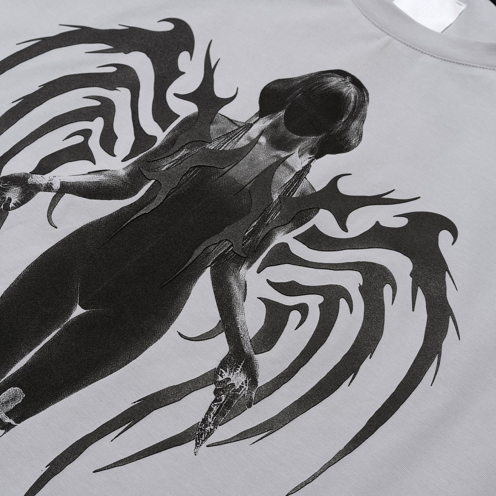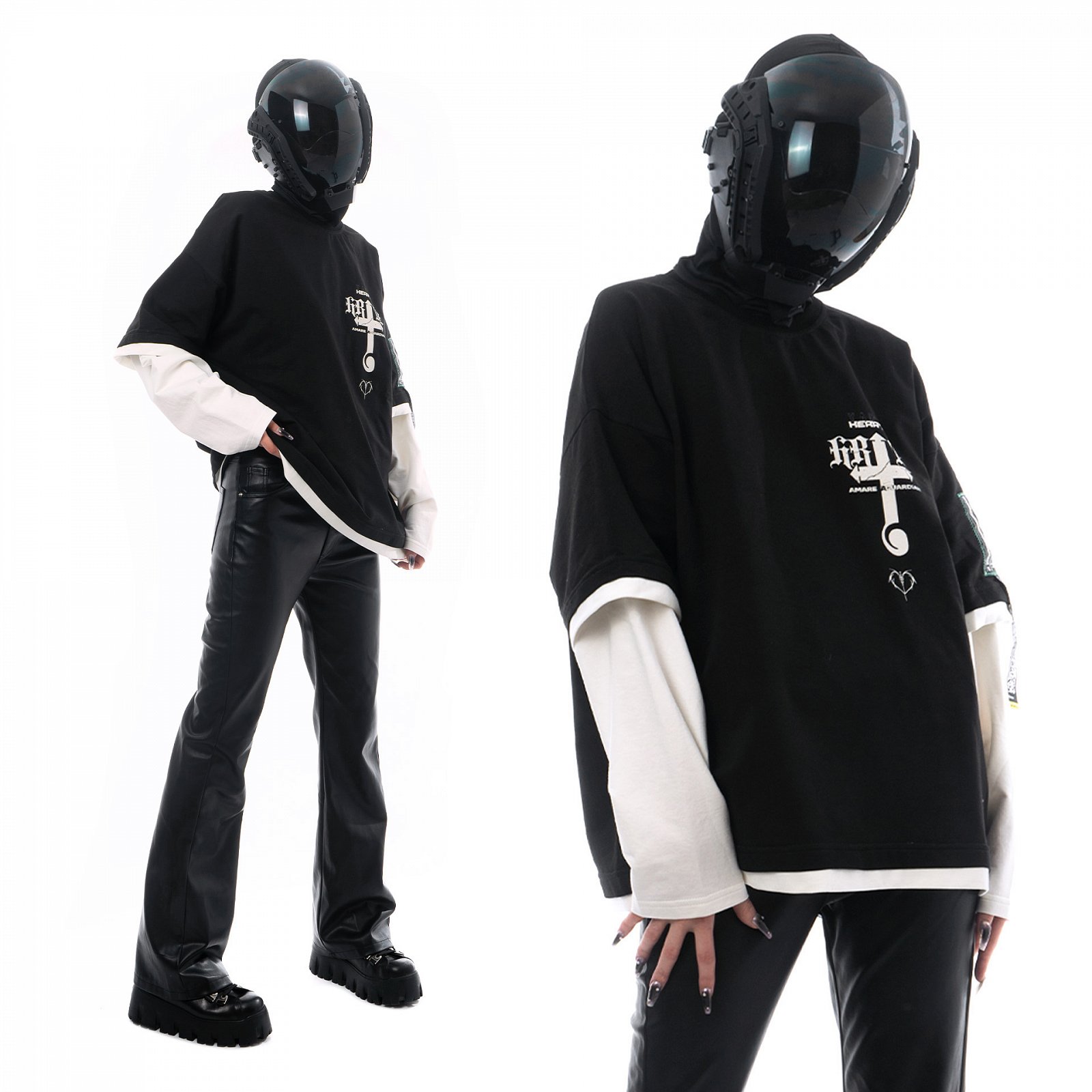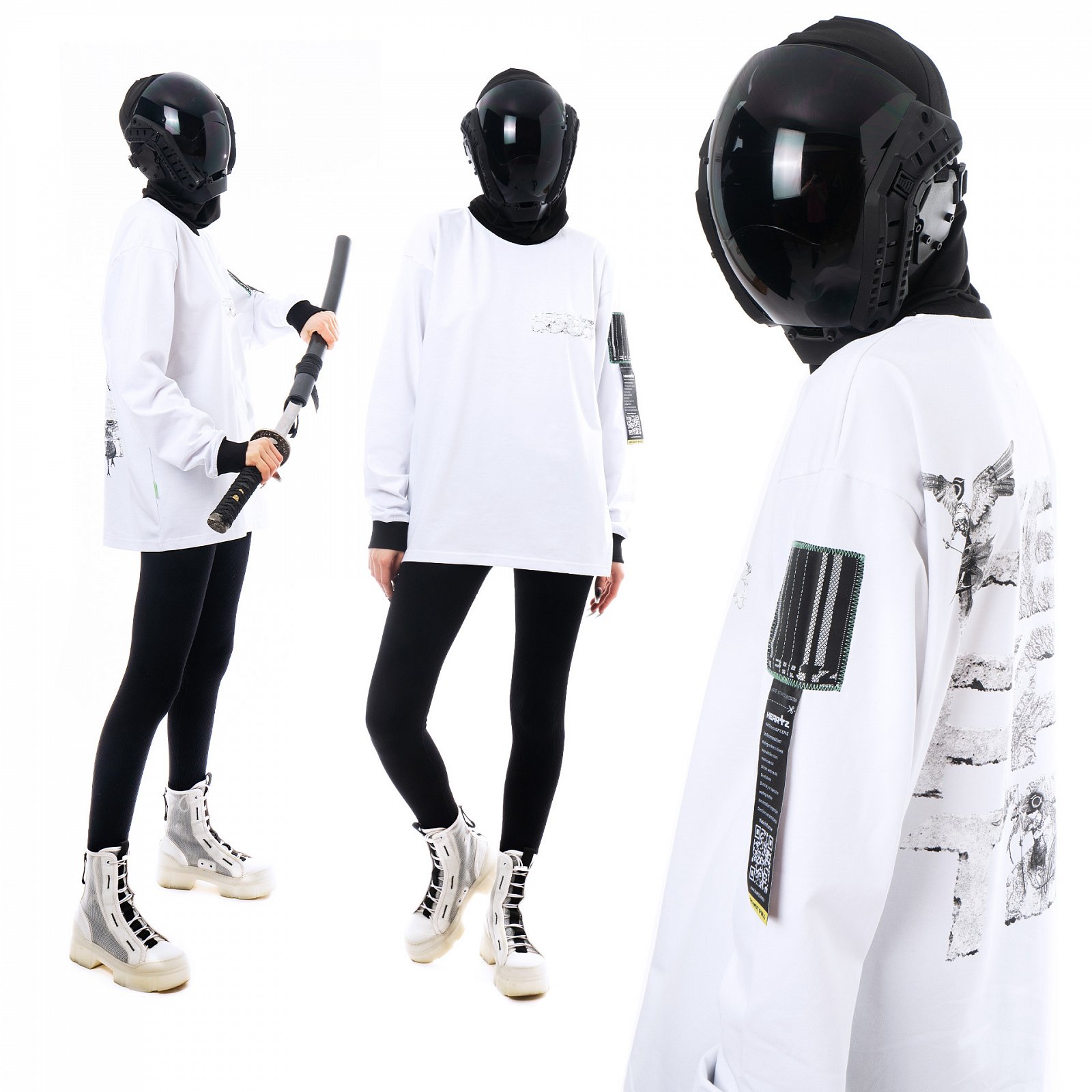 Лонгсливы и футболка по лаконичным классическим лекалам с массивными детализированными принтами, иллюстрации на которые основаны на серии игр Bayonetta