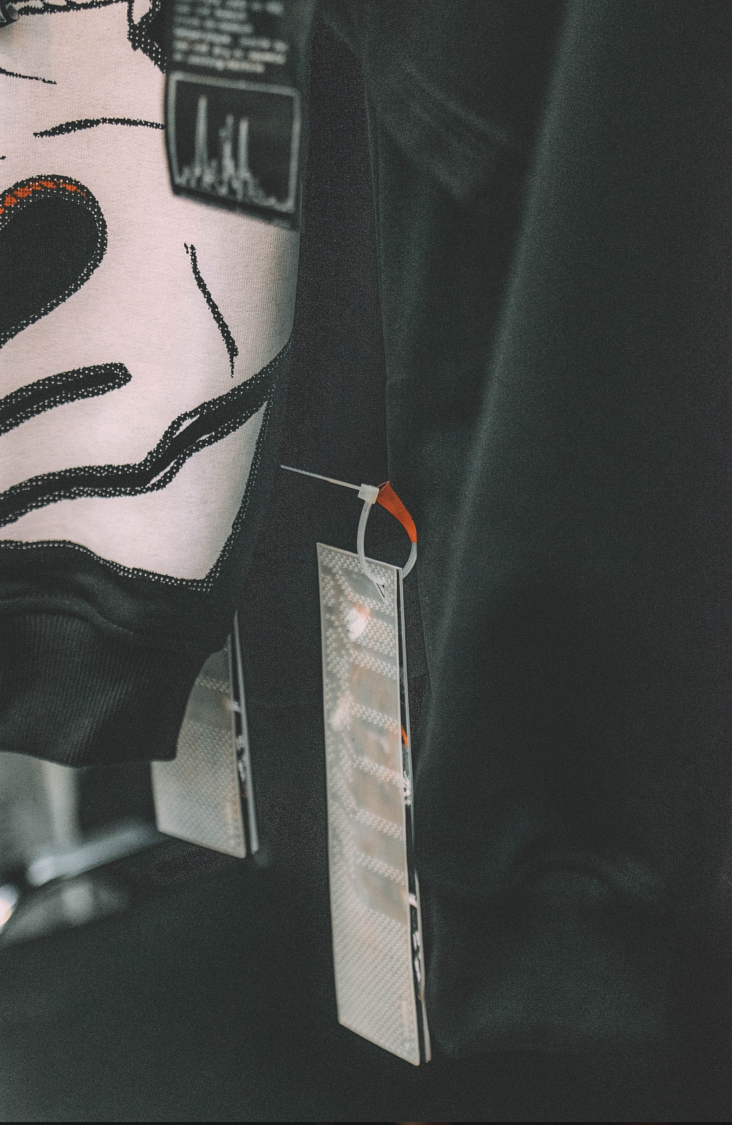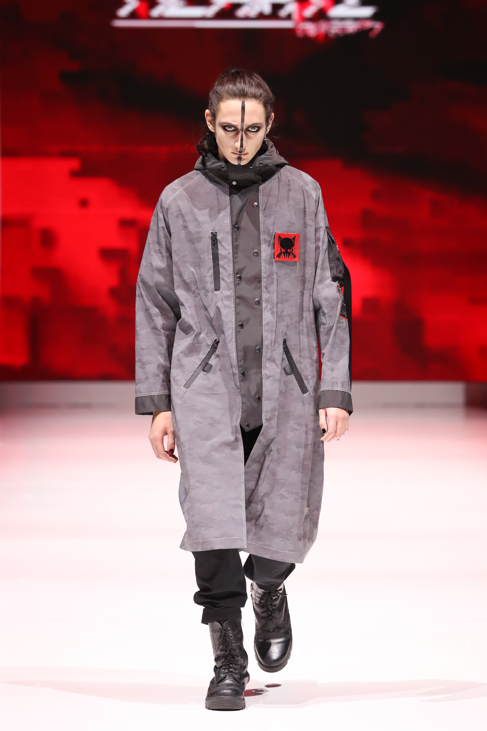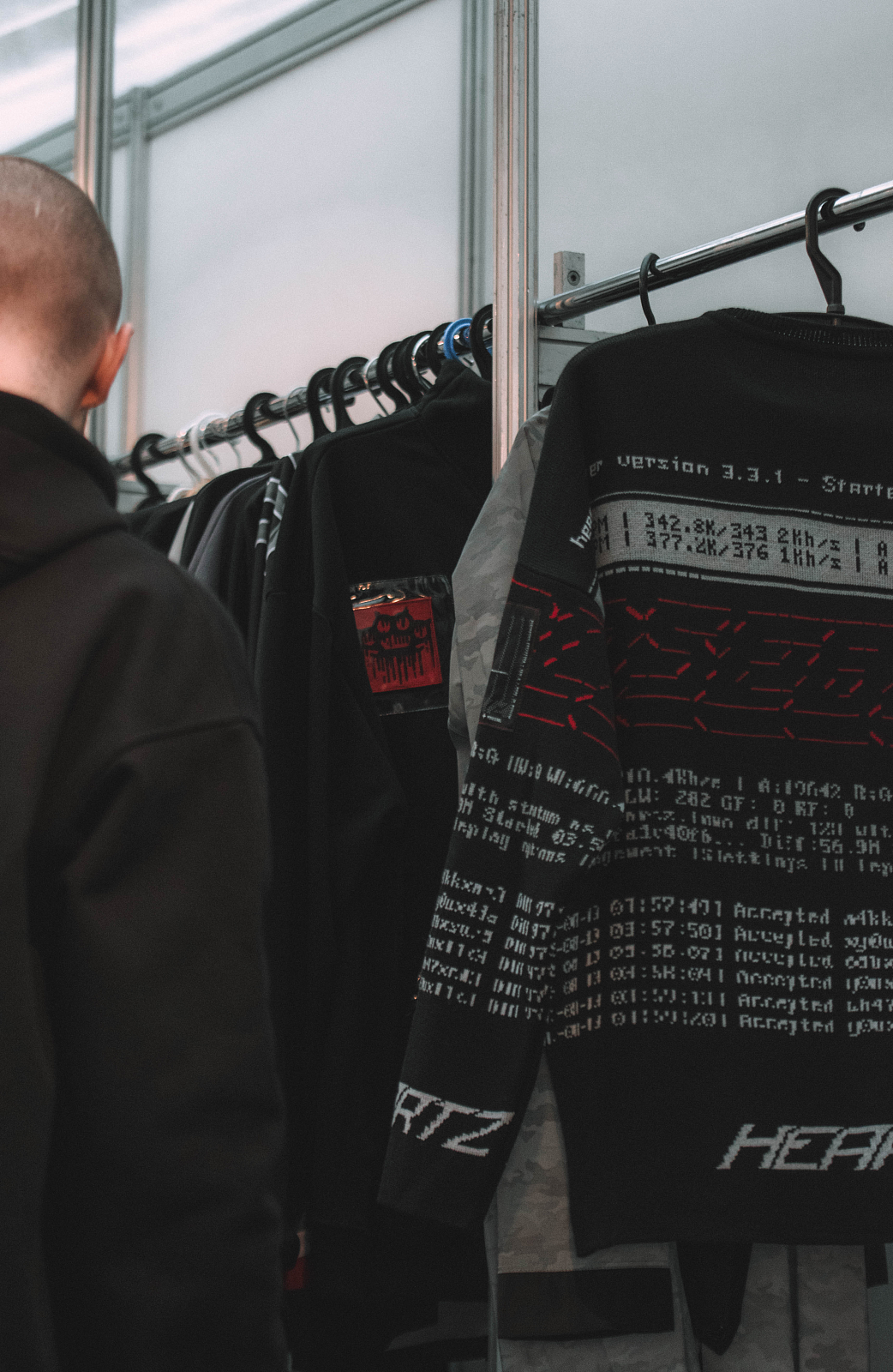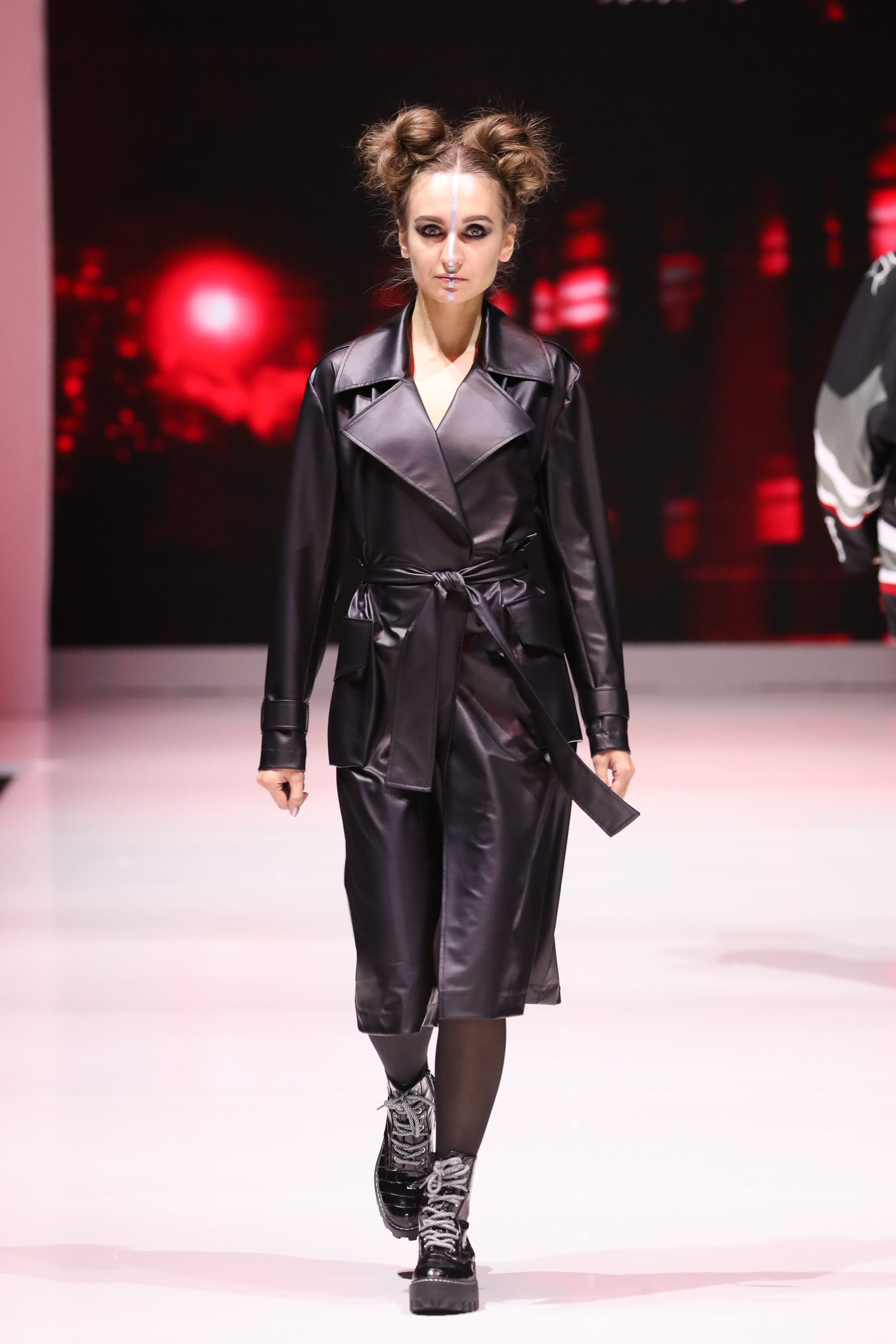 In addition to the obvious futuristic concept based on a wide range of phenomens, from "Ghost in the Shell" to "The Matrix", the collection is also based on a play with strong contrasts: between business and street style, between basic and heavy looks, between leather and knitwear.